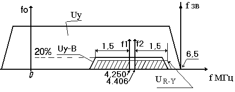 4) Передача цветного изображения в стандартной (8,0 МГц) полосе частот, отведенной для черно-белого телевидения (это требование обусловлено широким развитием сети телевизионного вещания и возникшей в связи с этим «теснотой» в эфире);