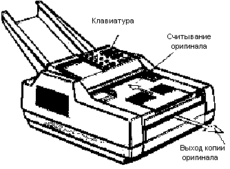 Для выбора режимов управления факсимильным аппаратом (Рис. 7.1 .62.) и ввода команд служит специальная клавиатура, похожая на клавиатуру телефонного аппарата с кнопочным управлением. Пользуясь ею, можно ввести в память аппарата телефонные номера корреспондентов, извлекать из памяти номера для соединения по телефону, производить набор телефонного номера, переключить аппарат на режим обычного телефонного разговора.
