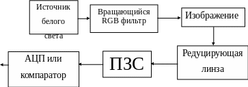 Рис. 3.1.14. Блок – схема цветного сканера с вращающимся RGB - фильтром