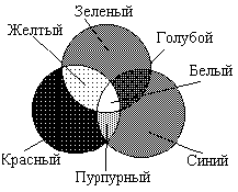 Это означает, что все цвета могут быть получены путем сложения трех основных цветов (синий, зеленый, красный), что позволило в цветных мониторах использовать метод аддитивного смешения цветов (Рис. 3.2 .19.).