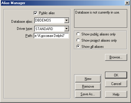 полное имя с каталогами, так и псевдоним базы (Аlias). Псевдоним позволяет не привязываться к каталогу, который может меняться в дальнейшем.
