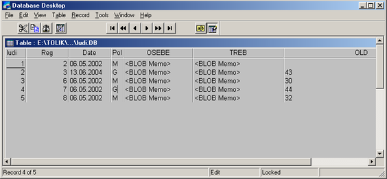 Для корректировки и просмотра открытой таблицы имеются команды ТаЫе/Restructure (кнопка Restructure) и ТаЫе/Into Structure. Для переименования таблицы следует сохранить ее под новым именем. Для заполнения и редактирования таблицы, после ее связывания с другими таблицами, испочьзуется кнопка Edit Data и меню Record приложения Database Deskot (кириллицу при вводе использовать нельзя).
