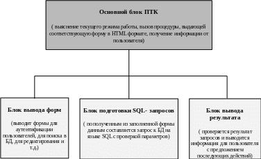 ПТК разрабатывается на языке PERL (Practical Extraction and Report Language). Это стандартный язык для написания сценариев работы WWW- сервера. Язык этот интерпретируемый, похож на нечто среднее между языками C , Pascal и Basic. Интерпретатор распространяется по Internet бесплатно. Последние версии объектно- ориентированные. В PERL присутствует возможность использования библиотек, написанных на других языках программирования в т.ч. возможность динамической загрузки- выгрузки библиотек. Язык безопасен для использования - случайное нарушение защиты памяти сильно затруднено.