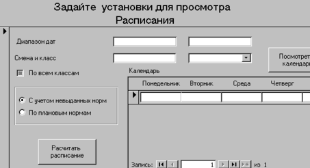 В общем случае существует возможность перед автоматическим расчетом расписания закрепить жестко некоторые дисциплины по дням недели (рис.34), остальные предметы встанут на свободные места согласно плановым нормам, указанным в учебной программе, либо с учетом отставания по программе. Автоматически согласуется непересекаемость предметов по каждому преподавателю и кабинетам.