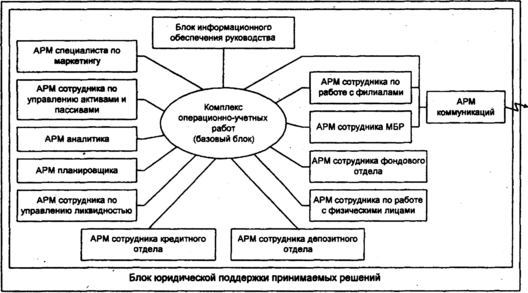 Проблемой банковской технологии остается разграничение функций между базовым модулем, реализующим комплекс операционно-учетных работ, и АРМ сотрудников других отделов.