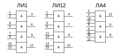 Логические элементы ЛА4, ЛИ1, ЛЕ1, ЛА12, ЛН1;