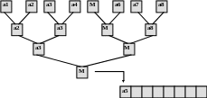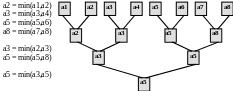 Ця структура даних називається сортуючим деревом. У корені сортуючого дерева розташований найменший елемент. Крім того, у дереві побудовані шляхи елементів масиву від листів до відповідного величині елемента вузла - розгалуження. (На мал.1 шлях мінімального елемента a5 - від листа a5 до кореня відзначений товстою лінією.)