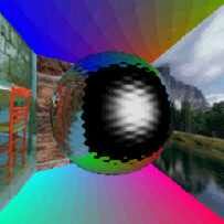 Карта смещений UV (UV-dispmap). Каждому пикселу ставится в соответствие вектор DuDv. Карта смещений UV используются для получения environment map с пертурбацией. Пертурбация означает, что environment map искажается определенным образом, чтобы передать рельефность. Полученный environment map также накладывается на основную текстуру альфа-смешением. Этот метод симулирует рельефность глянцевой или зеркальной поверхности отражением окружающей среды.