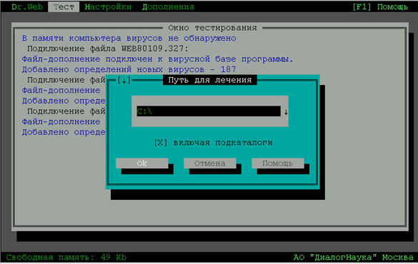 Далее нужно поочередно обезвредить все диски, которые могли подвергнуться заражению. Если жесткий диск разделен на несколько логических дисков, то при перезагрузке с дискеты будет виден только логический диск, с которого стартует ОС. Необходимо прежде всего очистить от заражения его, а затем, перегрузившись с жесткого диска, заняться его остальными разделами.
