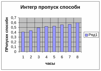 В тот момент, когда динамическая пропускная способность будет равна единице, наступит момент когда все запросы будут выполнены. На этой диаграмме такие моменты есть: это восьмой час. В момент, когда интегральная пропускная способность будет равна единице, все заявки будут выполнены. На диаграмме такой момент так и не наступил, поэтому можно сделать вывод, что в течении восьми часов определенное количество запросов осталось невостребованным.