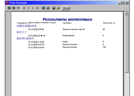 Отчеты формируются на основе результатов полученных при закрытии сессии . На рисунке 7.1 и 7.2 представлены формы формирования отчетов программной системы.