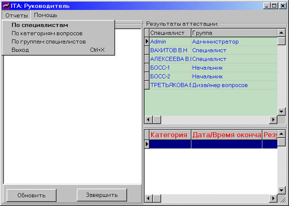 Компонент системы «Аттестация ИТ-специалистов», предназначен для использования специалистами на своих рабочих местах при проведении аттестации. Файл запуска - ita_att.exe