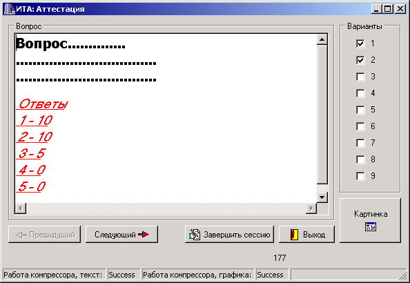 Когда даны ответы на все вопросы, необходимо воспользоваться кнопкой «Выход» и выйти из программы. Можно прервать процесс аттестации, и вернуться к нему вновь, при этом все ранее данные ответы будут сохранены.