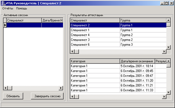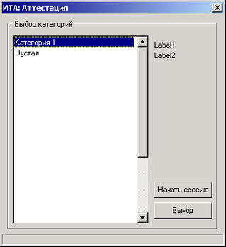 есколько категорий можно выбрать, удерживая кнопку CTRL. Когда категории выбраны, начинается сессия аттестации.