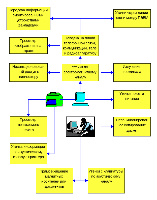 Рис. 3. Основные каналы утечки информации при обработке ее на ПЭВМ