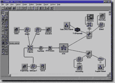 Система имитационного моделирования сетей COMNETIII позволяет точно предсказывать производительность локальных, глобальных и корпоративных сетей. Система COMNETIII работает в среде Windows 95, WindowsNT и Unix.