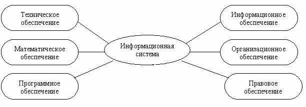 2.1 СТРУКТУРА ИНФОРМАЦИОННОЙ СИСТЕМЫТипы обеспечивающих подсистемСтруктуру информационной системы составляет совокупность отдельных ее частей, называемых подсистемами. Подсистема - это часть системы, выделенная по какому-либо признаку. Общую структуру информационной системы можно рассматривать как совокупность подсистем независимо от сферы применения. В этом случае говорят о структурном признаке классификации, а подсистемы называют обеспечивающими. Таким образом, структура любой информационной системы может быть представлена совокупностью обеспечивающих подсистем Рис. 1.4. Рис. 1.4. Структура информационной системы как совокупность обеспечивающих подсистем Среди обеспечивающих подсистем обычно выделяют информационное, техническое, математическое, программное, организационное и правовое обеспечение. Информационное обеспечениеНазначение подсистемы информационного обеспечения состоит в современном формировании и выдаче достоверной информации для принятия управленческих решений. Информационное обеспечение - совокупность единой системы классификации и кодирования информации, унифицированных систем документации, схем информационных потоков, циркулирующих в организации, а также методология построения баз данных. Унифицирова+нные системы документации создаются на государственном, республиканском, отраслевом и региональном уровнях. Главная цель - это обеспечение сопоставимости показателей различных сфер общественного производства. Разработаны стандарты, где устанавливаются требования: