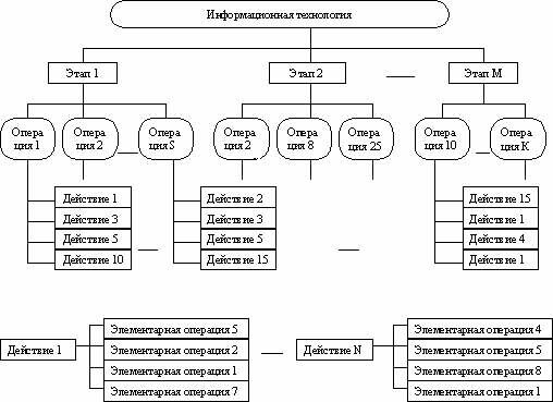 Рис. 1.8. Представление информационной технологии в виде иерархической структуры, состоящей из этапов, действий, операций