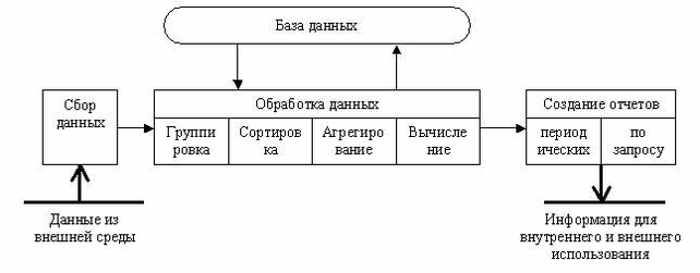 Основные компонентыОсновные компоненты информационной технологии управления показаны на рис. 1.13 Входная информация поступает из систем операционного уровня. Выходная информация формируется в виде управленческих отчетов в удобном для принятия решения виде. Рис. 1.10. Основные компоненты информационной технологии управления Содержимое базы данных при помощи соответствующего программного обеспечения преобразуется в периодические и специальные отчеты, поступающие к специалистам, участвующим в принятии решений в организации. База данных, используемая для получения указанной информации, должна состоять из двух элементов: 1) данных, накапливаемых на основе оценки операций, проводимых фирмой; 2) планов, стандартов, бюджетов и других нормативных документов, определяющих планируемое состояние объекта управления (подразделения фирмы). |
