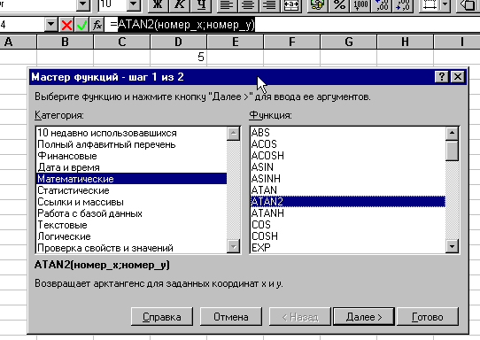 . При работе с этим средством вам сначала предлагается выбрать нужную функцию из списка категорий, а затем в окне диалога предлагается ввести входные значения.