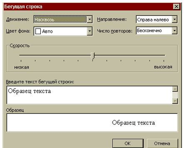 Работа с бегущей строкой предусмотрена во всех версиях Microsoft Internet Explorer.