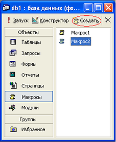 1. Раскройте список макросов в окне База данных, щелкнув левой кнопкой мыши по ярлыку Макросы, и нажмите кнопку Создать в верхней части окна.