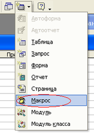 Щелкните по стрелке вниз на кнопке Новый объект на панели инструментов База данных и выберите элемент Макрос.