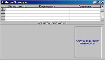 Нажмите кнопку Имена макросов на панели инструментов. На панели описаний в окне Конструктора макросов появится еще один столбец Имя макроса.