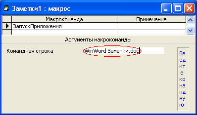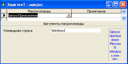 Присвойте аргументу Командная строка значение WinWord Заметки и сохраните макрос.
