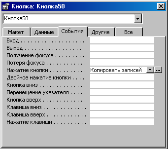 У каждого элемента управления свой список доступных событий. Однако действия при связывании всегда одинаковы. Например, чтобы связать некоторый макрос с перемещением мыши по форме, следует в режиме конструктора выполнить двойной щелчок в свободной области вне примечания формы и задать для события Перемещение указателя имя связываемого макроса.