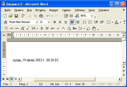 Рис 27. Ввод даты и времени в текстовый редактор Word