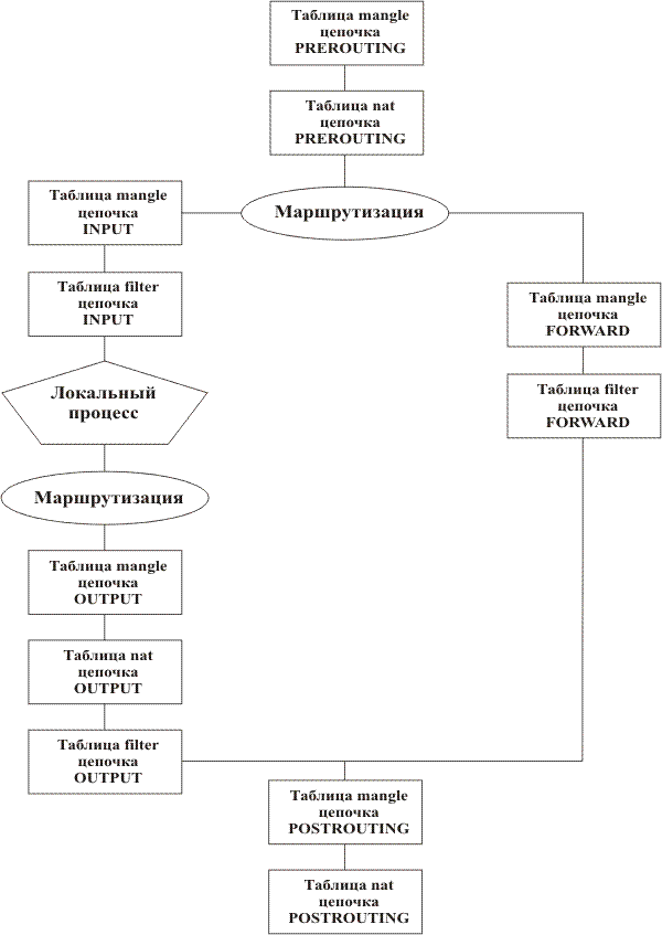 Структурная схема брандмауэра netfilter показана на рисунке 2.4.2.