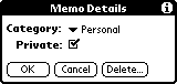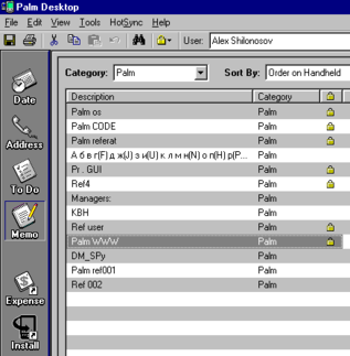 Принцип разделения по категориям работает во всех приложениях PalmOS. Категории можно создавать, удалять.