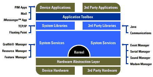 Палм является ОС с микро ядром (Micro Kernel OS), основное качество такого типа ОС это гарантировано малое время реакции на любое внешние событие. (микро ядро AMX разработано фирмой Kadak)