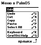 еню а Палм существует для того чтобы снять нагрузку с Формы и убрать все второстепенные элементы интерфейса в меню. Однако нужно помнить что, для того чтобы добраться до меню пользователь делает 3 клика стилусом, поэтому там обычно находятся редко употребляемые команды.