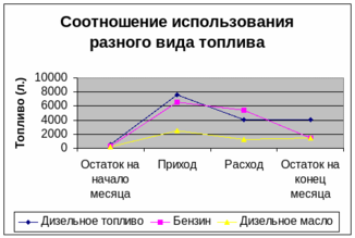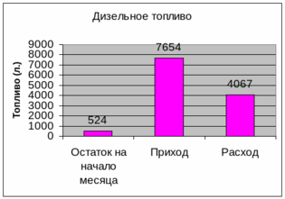| Наименование топлива | Остаток на начало месяца | Приход | Расход | Остаток на конец месяца |