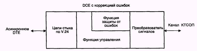Блок защиты от ошибок предназначен для управления процедурами исправления ошибок. Именно он и реализует протокол связи LAPM.