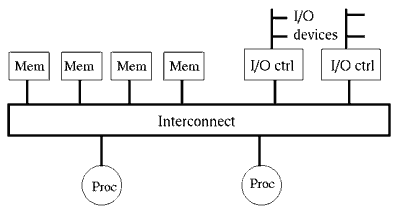 SMP система состоит из нескольких однородных процессоров и массива общей памяти. Один из часто используемых в SMP архитектурах подходов для формирования масштабируемой, общедоступной системы памяти, состоит в однородной организации доступа к памяти посредством организации масштабируемого канала память-процессоры: