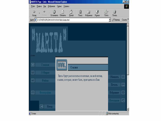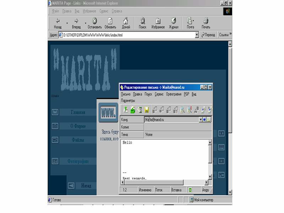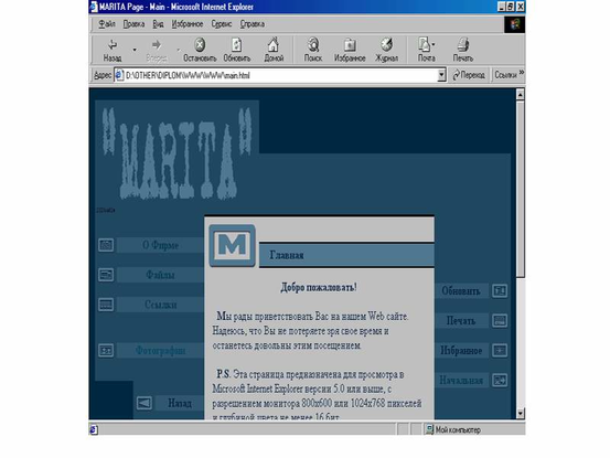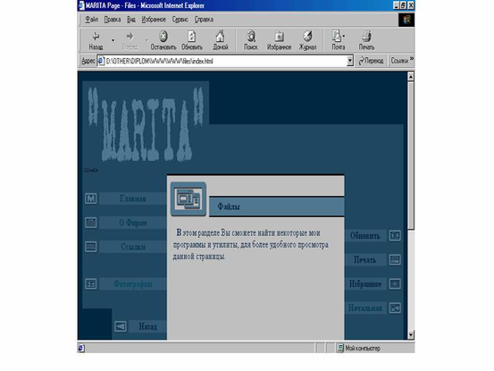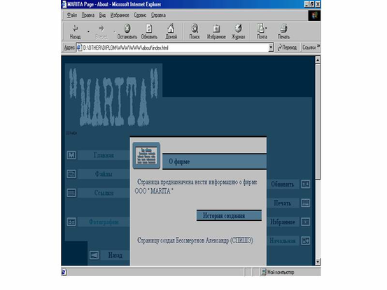 Рис 3. Окно ссылки ”О фирме”