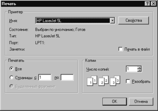 В окне диалога нет кнопок свертывания и развертывания окна. Рядом с кнопкой закрытия окна расположена кнопка? для получения справочной информации. Если нажать эту кнопку, то рядом с указателем мыши появится знак? Щелкнув таким указателем по любому элементу диалогового окна, Вы увидите подсказку по этому элементу.