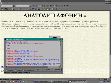 А как собственно заходить на эти самые сайты, о которых мы так наслышаны. Тридаблъю, ввв, да, да это и есть сайты. Сайт создан из файлов гипертекстовой разметки HTML. Все странички скреплены между собой. От одной странички можно перейти к другой, от другой ещё дальше, так веть и заблудиться можно в конце то концов. А как создаются сайты – скажете вы?! Обычно. Всё тот же текст, картинки внём. Но в формате HTML, и со всякими там финтифлюшками. Создать свой сайт очень и очень легко. Создать его можно с помощью программы имеющейся в составе Internet Explorer, Front Page.