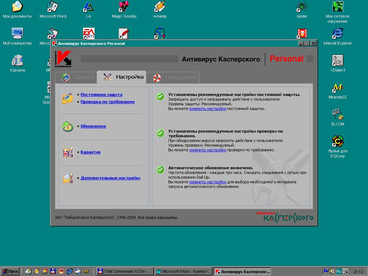 Я лично никогда этой программой не пользовался. Для меня она какая-то непонятная. На мой взгляд, она уступает в простоте своему конкуренту на рынке антивирусных программ Доктору Вебу, на мой взгляд, повторяю! Но все-таки это неплохая программа на русском языке, с большими возможностями. Эта программа, по-моему, в каждом сборнике условно бесплатных программ.