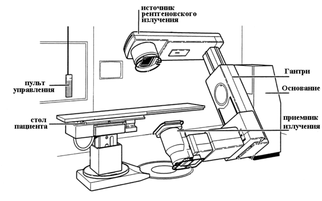 Напротив штатива излучателя и устройства регистрации изображения (УРИ) установлен стол с плавающей декой которая располагается в промежутке между излучателем и УРИ. Благодаря повороту дуги, поступательным движениям деки стола и поворотам станины стола пучок излучения может быть направлен под произвольным углом в любую точку тела пациента, лежащего на столе.
