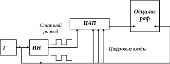 Так, например, если необходимо измерить время установления полной шкалы ЦАП, то его цифровые входы подключают к выходу генератора Г с напряжением, соответствующим логической «1».