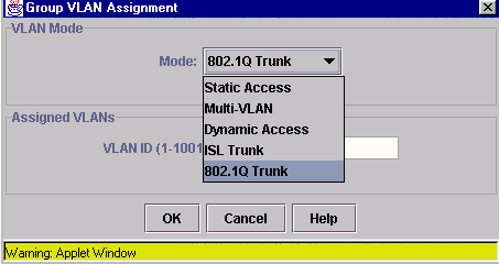 На 3-й странице вы можете увидеть конфигурацию trunk портов: в первой колонке - имя trunk порта, режим его протокола: ISL или IEEE802.1q, список допустимых VLAN и список ???? VLAN. Для изменения списка допустимых и ???? VLAN нажмите кнопку modify для данного trunk порта.