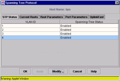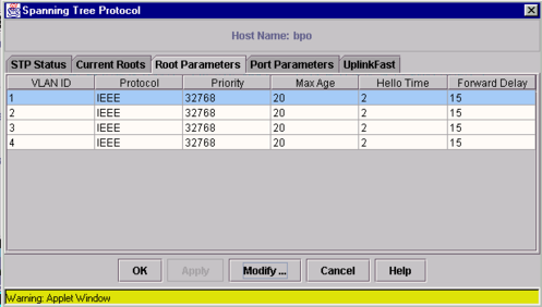 3-я страница позволяет изменить параметры STP для данного свитча. Для этого выберите vlan и нажмите кнопку modify - вам будет представлен список параметров STP для данной vlan.