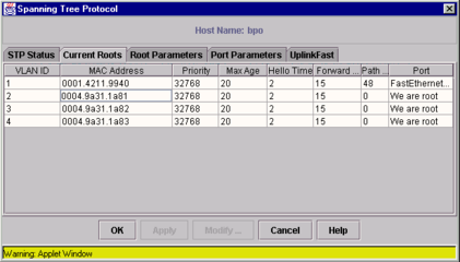 2-я страница показывает список главных свитчей STP (STP root) для отдельных VLAN. Эта страница служит для просмотра mac адресов и других параметров главных свитчей. Эти параметры будут разъяснены далее.