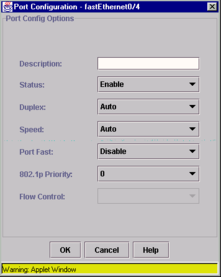 Для настройки режима дуплекса: в поле Duplex, выберите Half (полу), Full (полный), или Auto (автоопределение). Fast Ethernet порты по умолчанию устанавливаются в режим Auto.