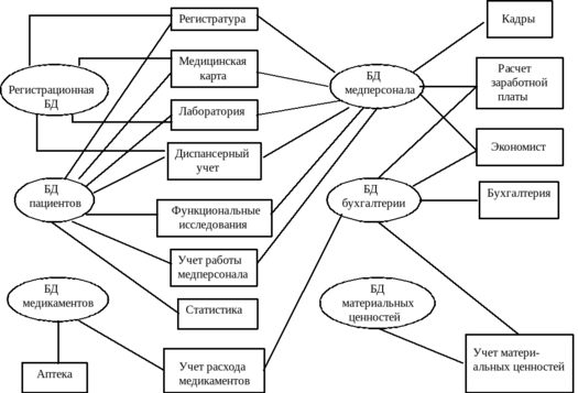 - просмотр списка пациентов, записавшихся на прием, и информации о каждом пациенте из регистрационной базы данных;
