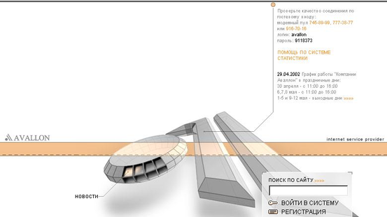 Дизайн очень интересный, причём загружается всё довольно быстро. Никакой ненужной информации, никаких лишних деталей. Все страницы сайта выдержаны в едином стиле, дизайн оригинален и притягивает к себе внимание. Я не буду особенно распространяться относительно дизайна страницы этого провайдера, скажу только, что, как мне показалось, Avallon и Гарант-Парк-Телеком использовали примерно одни и те же технологии при построении сайта, в заключении я еще раз скажу, что именно эти два сайта мне понравились больше всего свей оригинальностью, простотой, чёткостью, слаженностью и лаконичностью как в дизайне, так и в общей системе построения, что чрезвычайно упрощает в том числе (что немаловажно для посетителей) и навигацию по сайту.